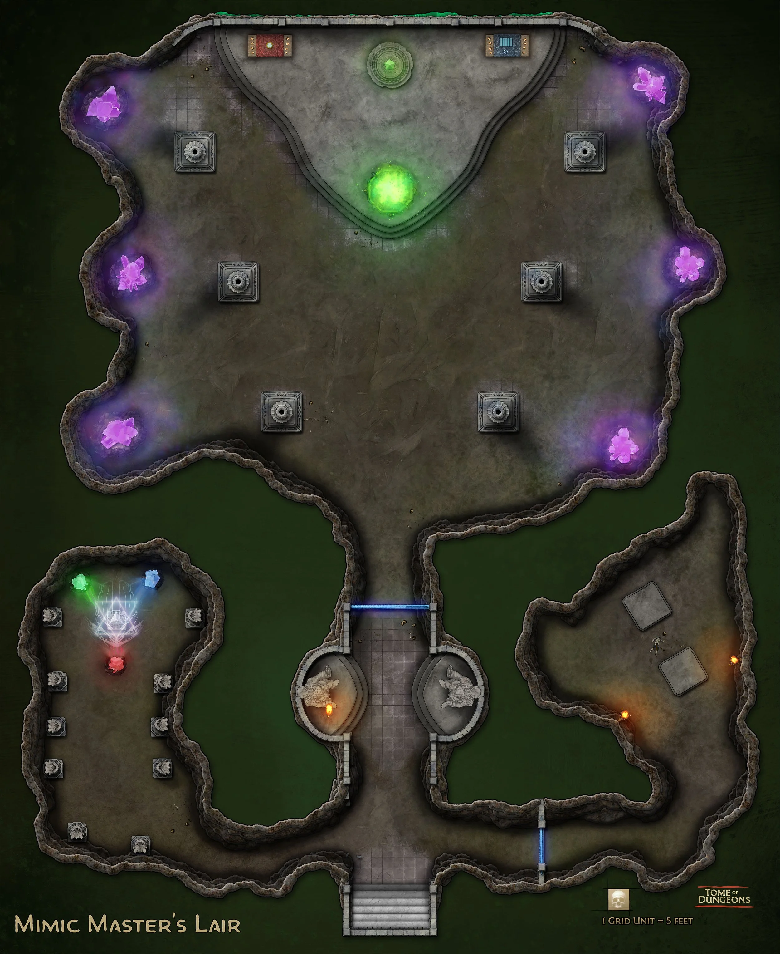 Greetings, Human! You've just stumbled upon the secret vault of the Tome of Dungeons gallery, a mysterious labyrinth brimming with meticulously crafted D&D 5e dungeon maps. Here at MeditatingMunky.com, we've conjured up a fantastical array of environments, from the sneaky waterfall bandit camp of Deathmist Vault to the time-bending steampunk vibes of the Vault of Duality.